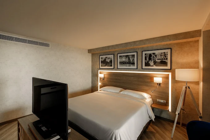 The hotel features elegant rooms and suites equipped with premium amenities such as plush bedding, spacious bathrooms, work desks, flat-screen TVs, and city or sea views depending on the room category. The interiors are designed for relaxation and productivity, making it a great option for both leisure and corporate stays.